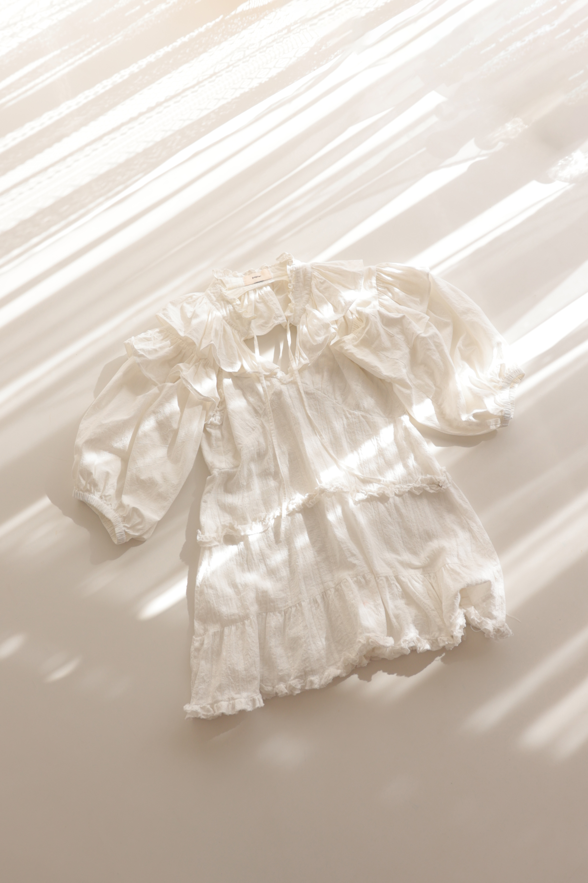 白ミニワンピ+付け袖コーデ 白のミニワンピースに長袖タイプの付け袖を重ねたコーデ中に白のセットアップインナートップスとパンツを着用していますミニワンピ Sサイズ相当(伸縮性なし) 背中ボタンタイプ付け袖 Mサイズ相当(伸縮性なし)※ヘアアクセサリーお客様ご持参物