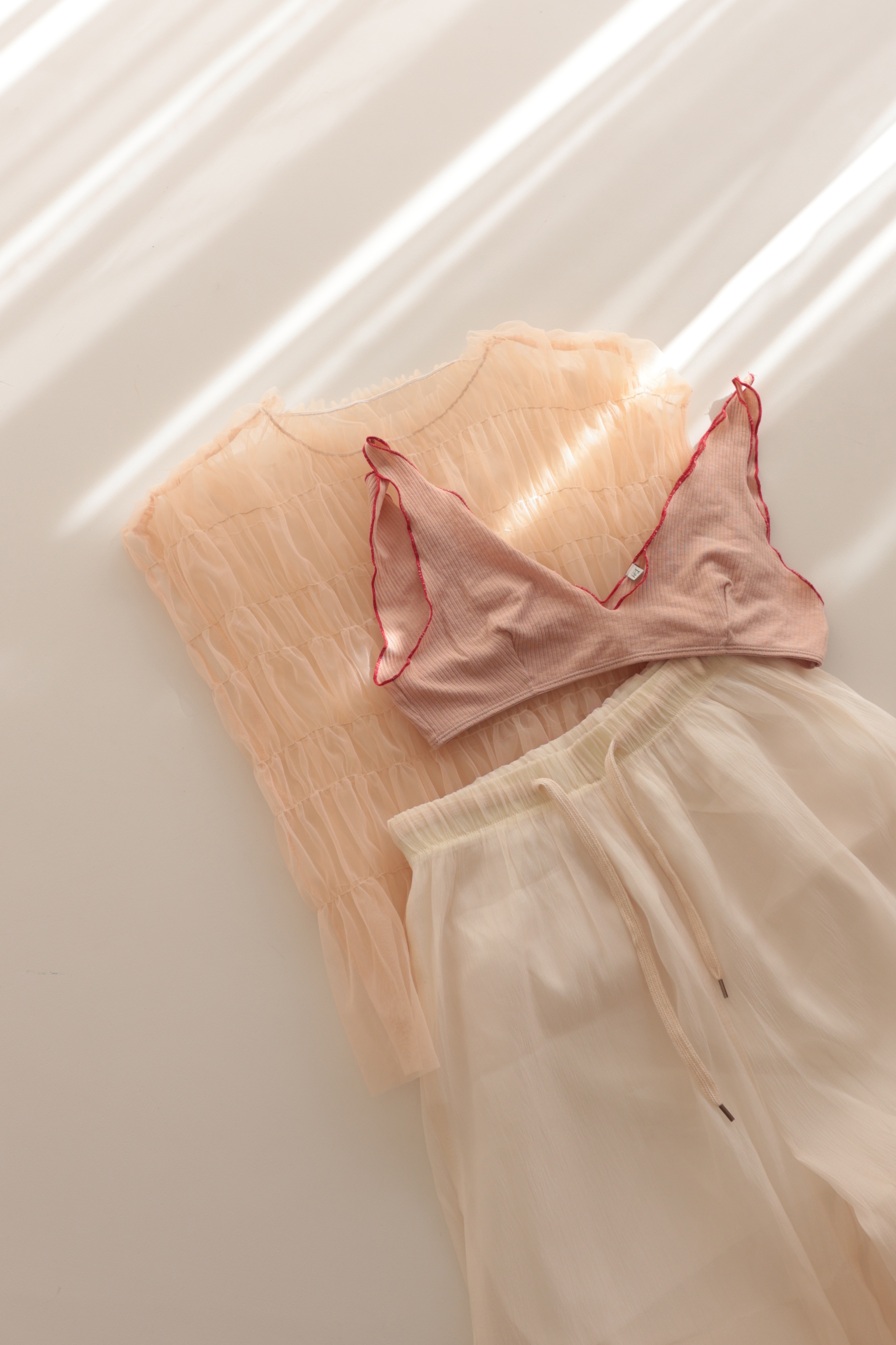 ※ロングパンツに裏地はついていますが、素材がオーガンジーで薄いので